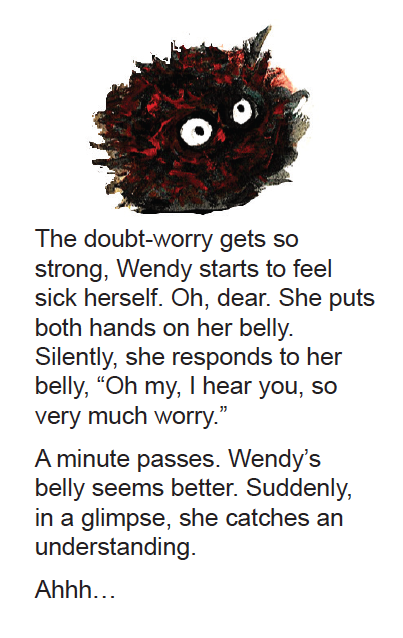“Your stories are wonderful!  You weave authentic emotional reactions with physical reactions (wet and shivery, doubt-worry) within the story.  You have described many strategies and focusing tools very well (come home to your breath) and they are embedded naturally as the story unfolds.  Love it!  It IS hard to be brave when other people do not understand you.  Not alone truly is precious.  So much of the story is relatable to almost all kids.”